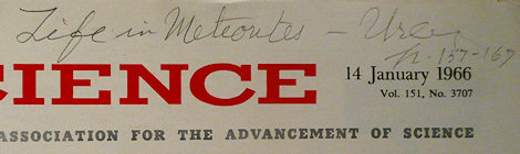 H. H. Nininger's personal copy of magazine with notation in his handwriting at top of cover